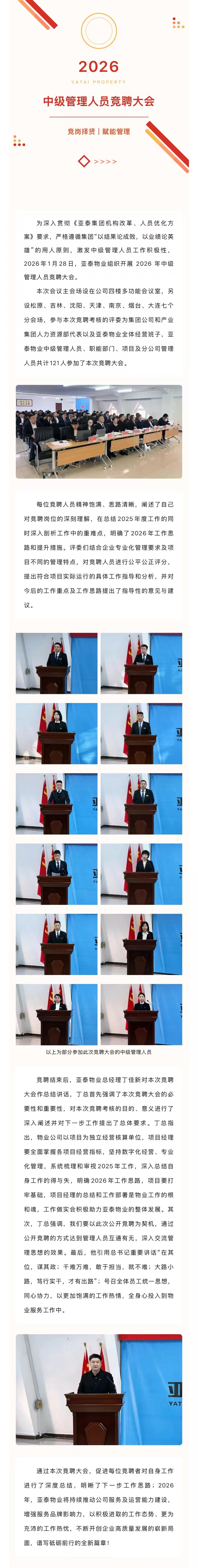 竞岗择贤,赋能管理—— 亚泰物业2026年中级管理人员竞聘大会圆满举行