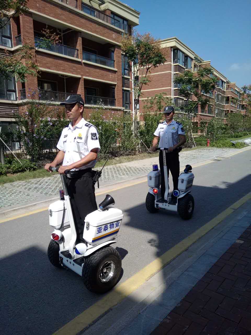 亚泰山语湖物业服务中心率先引进安管巡逻平衡车进行园区安全巡逻,安管员每日列队在园区进行巡逻,提高巡逻效率的同时,也提升物业服务品质,成为园区服务的一到靓丽的风景线,打造小区品牌特色。