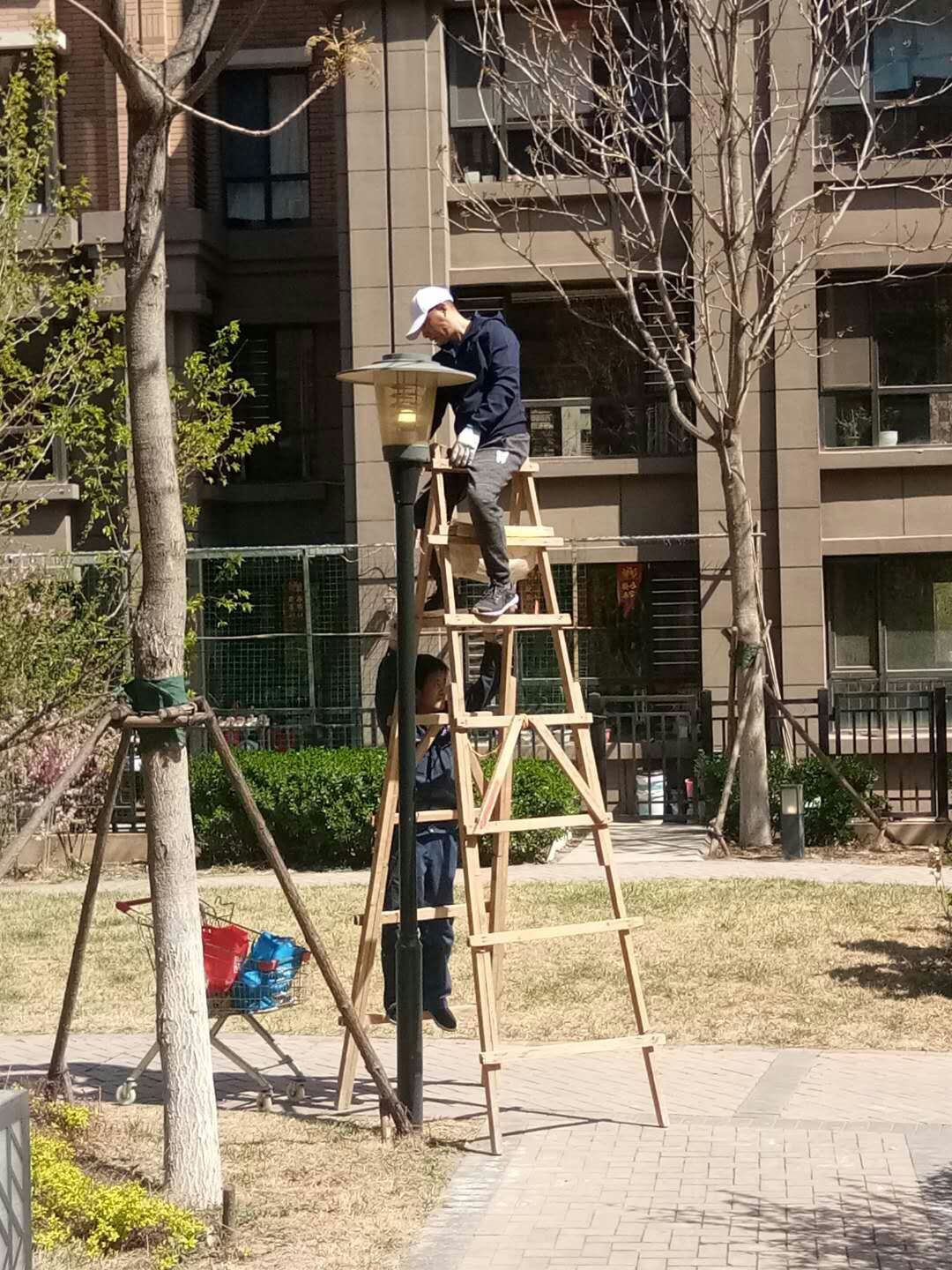 维修工人们经过几天的努力,园区亮化工作基本完工,体现物业员工工作的高效性,也体现出干物业我们是认真的!