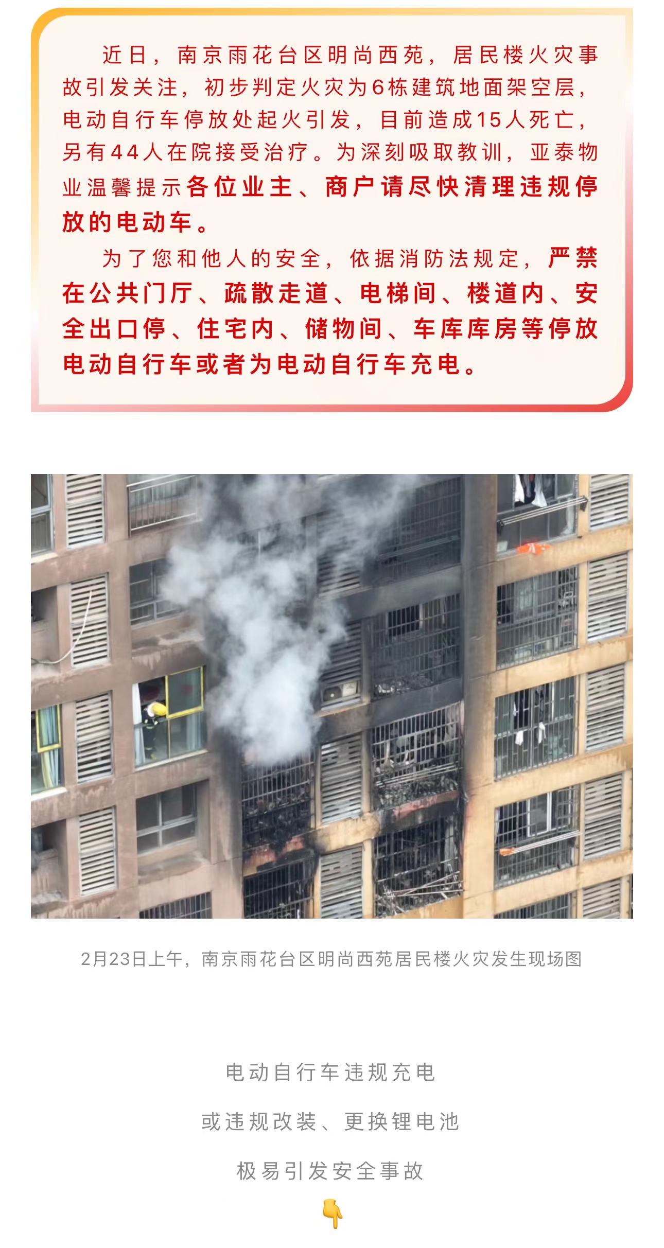 生命无彩排,防患于未然——亚泰物业关于规范使用电动自行车的安全倡议