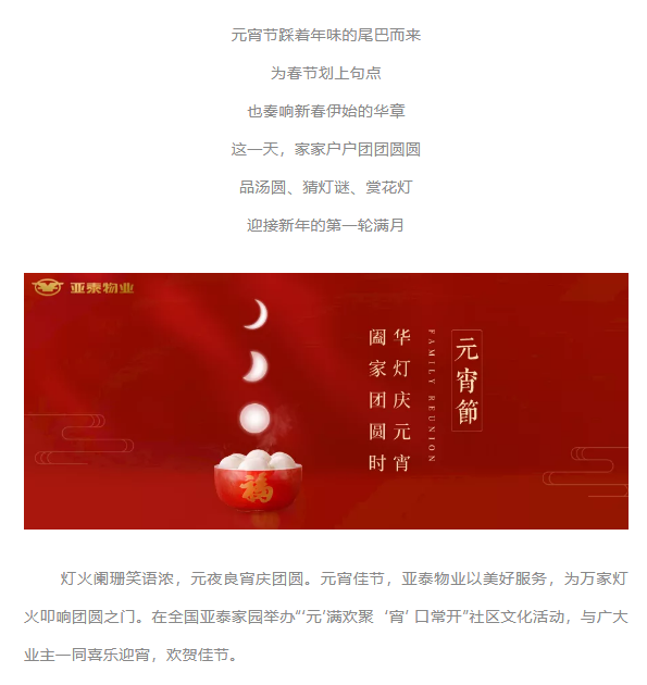 【乐活亚泰】之 “‘元’满欢聚 ‘宵’ 口常开”!