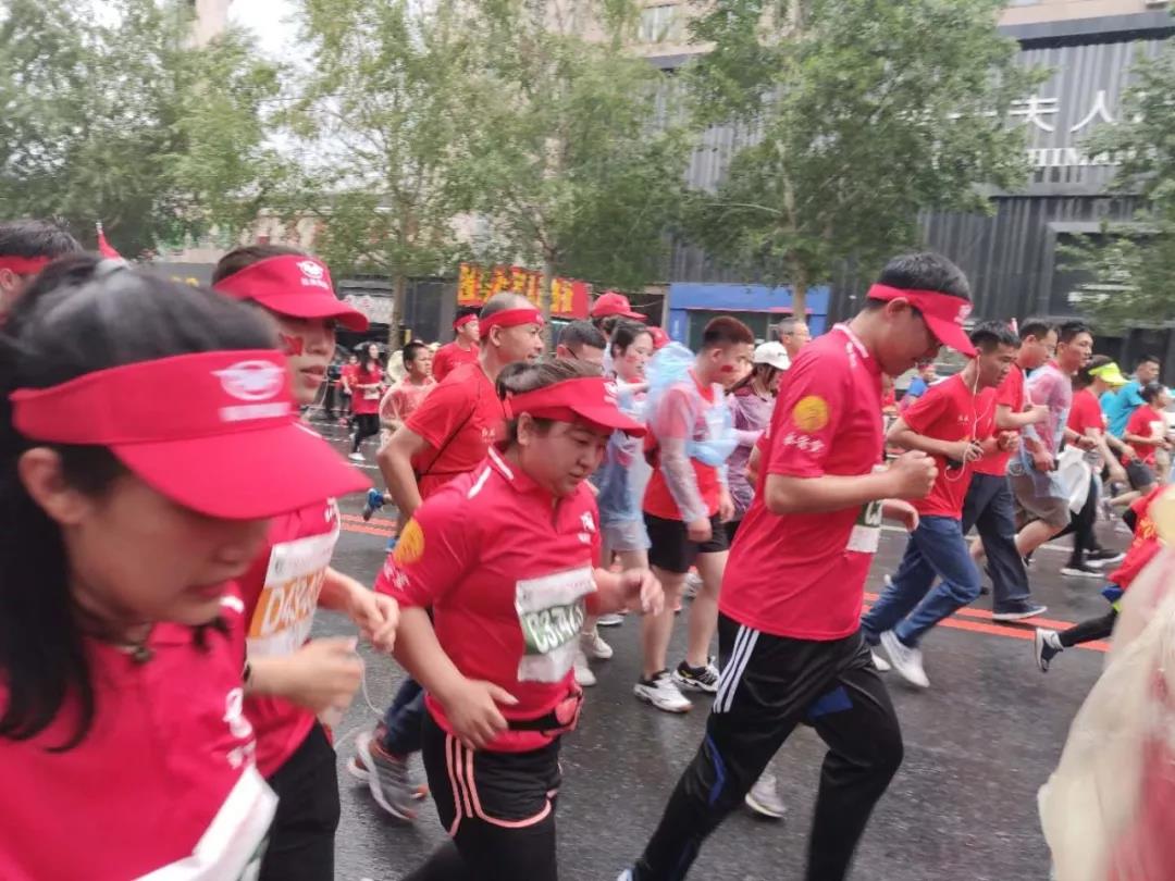 8:00大赛开始,长春马拉松赛场上空雨点飘洒,现场数万名马拉松参赛者在雨水中飞奔驰跑,将“勇敢无畏,一往向前”的运动精神发挥到了极致。亚泰物业的跑者们身在其中,热情不减,将激情与汗水挥洒在马拉松赛场上,在漫天雨水的映衬下,将物业人最佳的精神风貌展现的淋漓尽致。