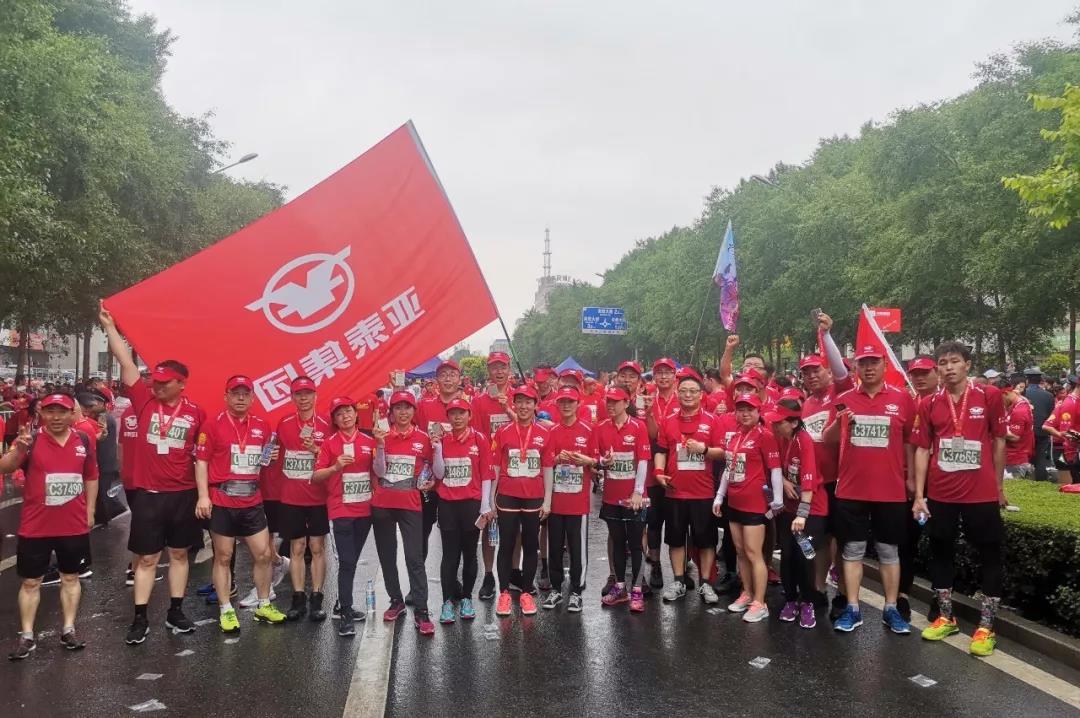 比赛当天清晨6时20分,亚泰物业跑者们早已在马拉松起点集合完毕,整装待发,意气昂扬。