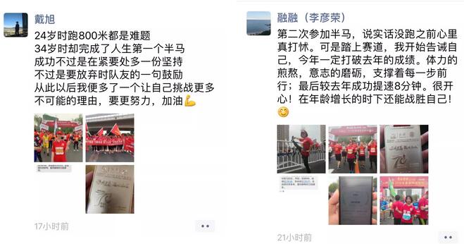 如果说跑步是对生命的探索,马拉松则是对成长的执着和追求,把握前进的节奏,在探索中不断进取,超越自我。完成了这次马拉松,也为亚泰物业的跑者们带来了无限感慨。
