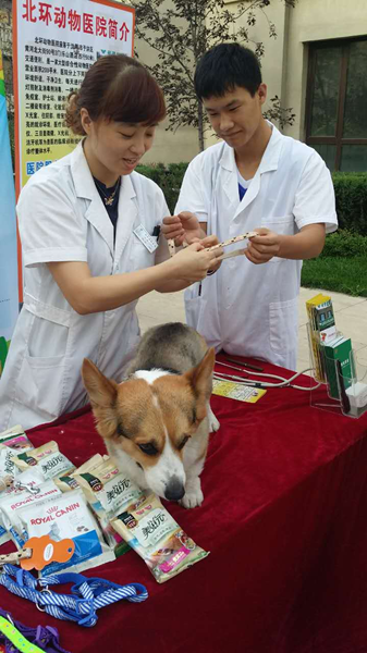 2015年8月14日,沈阳亚泰城物业服务中心聘请专业宠物医生为业主解答爱犬日常养护、食物搭配、疾病处理等问题。