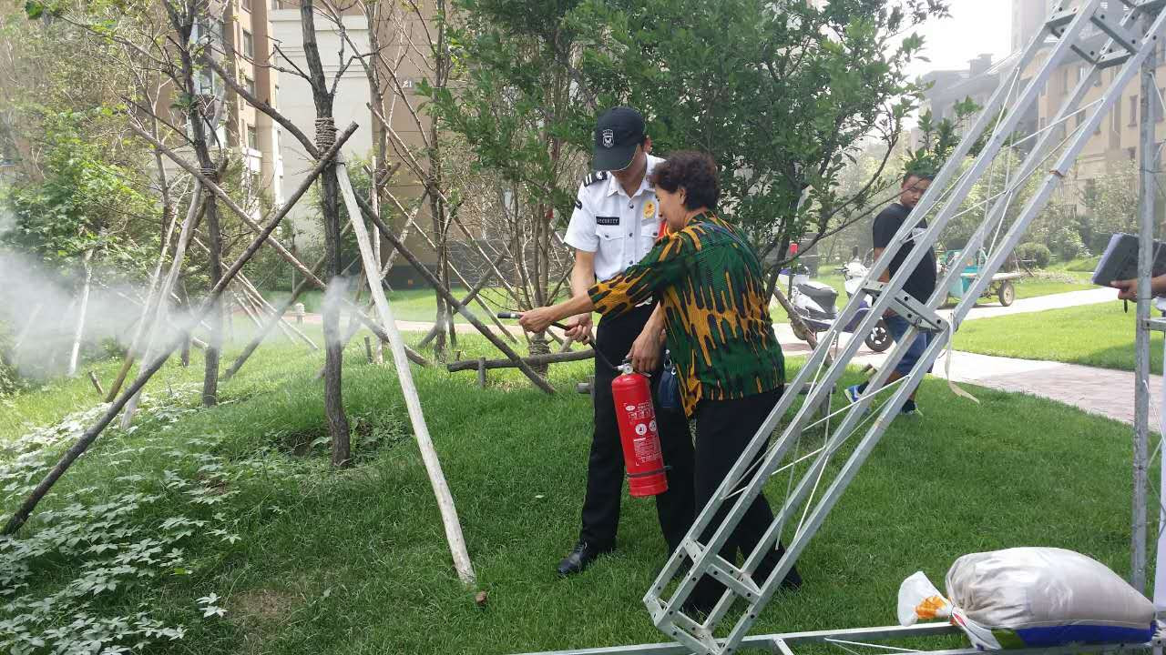 演练之后,公司安全员还向大家讲解了灭火器的正确使用方法、家庭防火常识以及火灾应对措施、逃生技巧等,在场的每位业主均现场进行练习。