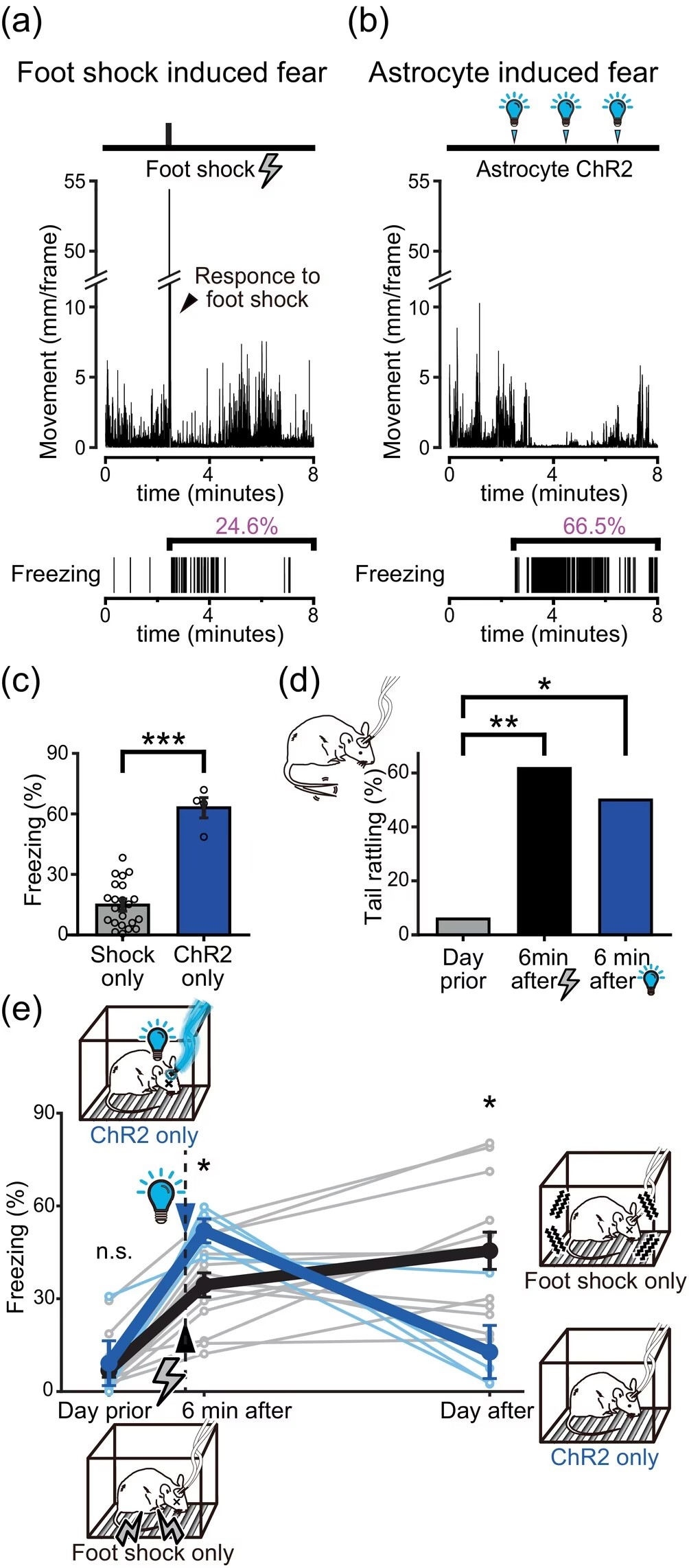 星形胶质细胞ChR2的光激活或会诱导恐惧样的行为
