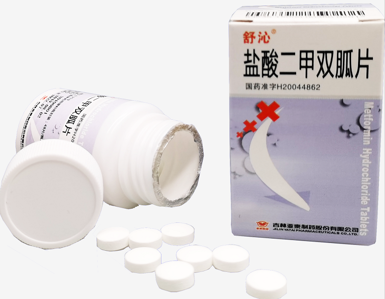 适应症:用于单纯饮食控制不满意的Ⅱ型糖尿病病人,尤其是肥胖和伴高胰岛素血症者,用本药不但有降血糖作用,还可能有减轻体重和高胰岛素血症的效果。对某些磺酰脲类疗效差的患者可奏效,如与磺酰脲类、小肠糖苷酶抑制剂或噻唑烷二酮类降糖药合用,较分别单用的效果更好。亦可用于胰岛素治疗的患者,以减少胰岛素用量。
