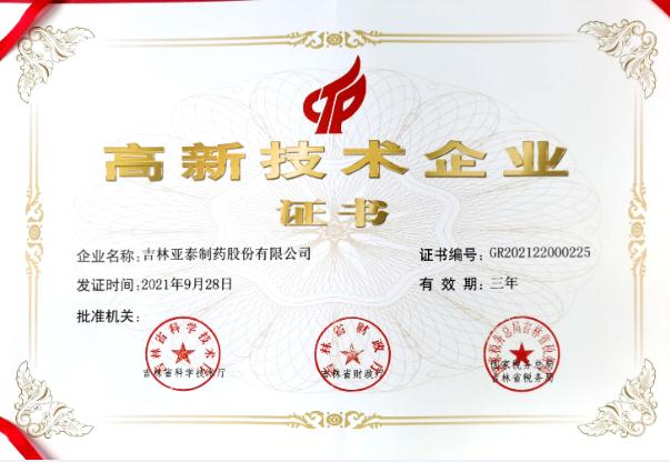 高新技术企业证书