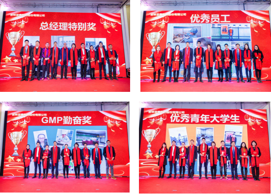 借助此次会议契机,企业召开2018年度评优表彰会议,对2018年度取得优异成绩的三个“先进集体”、五名“模范员工”、十名“优秀员工”、六名“优秀青年大学生”、六名“GMP认证、项目申报奖” 、五名“安全管控奖”、七名“产业园建设及GMP认证总经理特别奖”的优秀集体及个人予以表彰奖励。