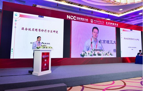 北京理工大学杨健教授就《增强现实引导医学精准诊疗研究》做现场报告。