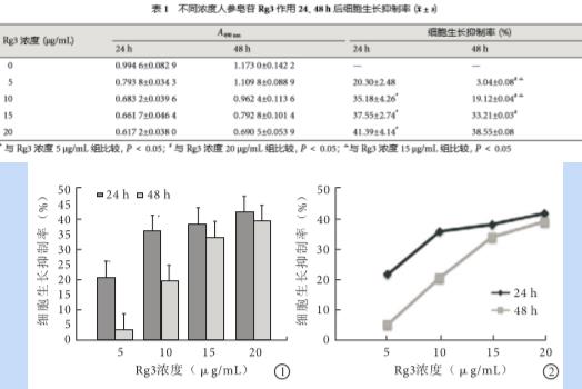 1)人参皂苷Rg3对肿瘤细胞生长抑制率的影响