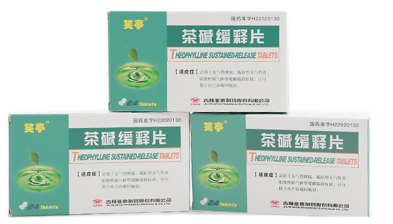 药理作用:本品对呼吸道平滑肌有直接松弛作用。其作用机理比较复杂,过去认为通过抑制磷酸二酯酶,使细胞内cAMP含量提高所致。近来实验认为茶碱的支气管扩张作用部分是由于内源性肾上腺素与去甲肾上腺素释放的结果,此外,茶碱是嘌呤受体阻滞剂,能对抗腺嘌呤等对呼吸道的收缩作用。茶碱能增强膈肌收缩力,尤其在膈肌收缩无力时作用更显著,因此有益于改善呼吸功能。