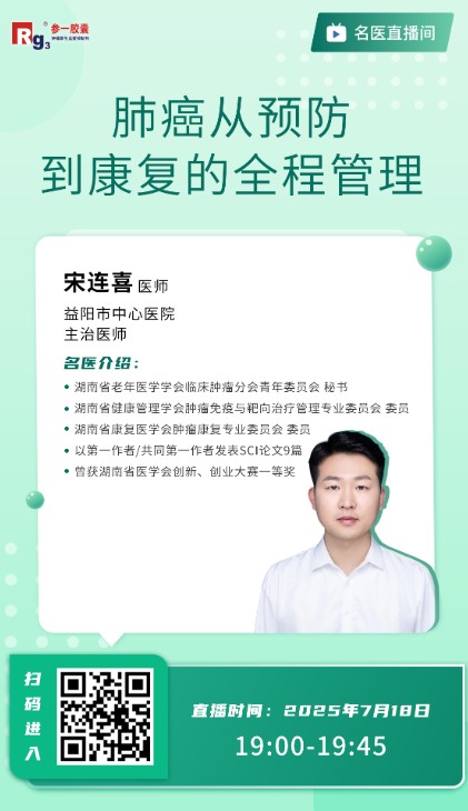 本次直播特邀益阳市中心医院肿瘤内科宋连喜做客直播间,与大家分享《肺癌从预防到康复的全程管理》主题讲座。讲座的最后宋医师也针对广大患者朋友们提出的部分共性问题作出了解答。