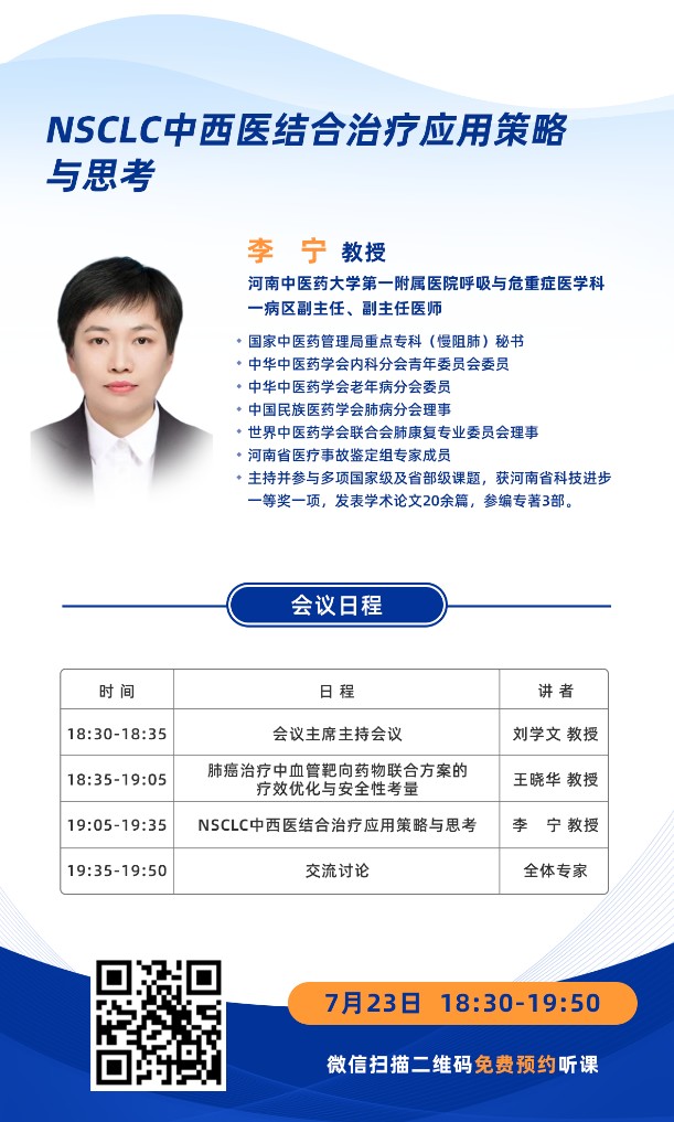 2025年参一胶囊第八期“空中课堂”特邀中南大学湘雅三院肿瘤科主任刘学文作为会议主席。江苏省肿瘤医院内科王晓华和河南中医药大学第一附属医院呼吸与危重症医学科李宁作为报告专家。
