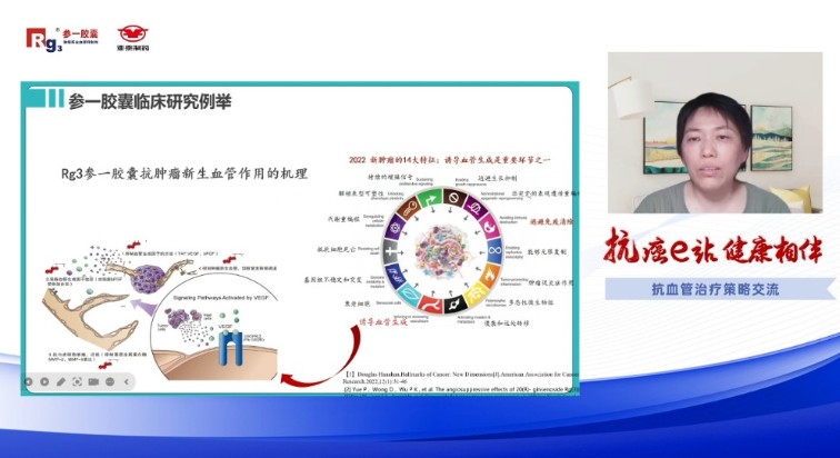 王晓华教授以《肺癌治疗中血管靶向药物联合方案的疗效优化与安全性考量》为主题,阐述了中医对于肺癌认识,阐述了中医药在治疗方案的优势。参一胶囊的临床研究中也充分体现了中药抗血管生成药物的优势。最后王教授分享了2例肿瘤病例患者,参一胶囊在整个治疗过程中,没有明显的副作用,协同靶向,免疫效果良好。
