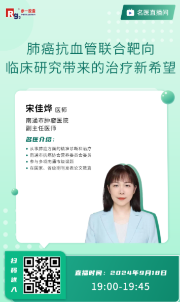本次直播特邀南通市肿瘤医院宋佳烨医师做客直播间,与大家分享《肺癌抗血管联合靶向临床研究带来的治疗新希望》主题讲座。讲座的最后宋医师也针对广大患者朋友们提出的部分共性问题作出了解答。