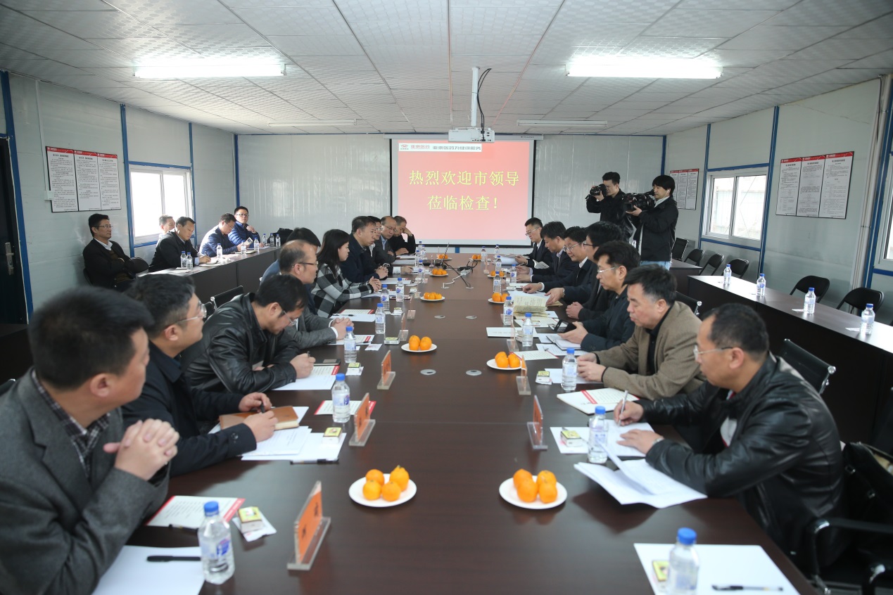 王书记一行一到产业园,首先踏查了产业园工地现场。之后,在项目建设指挥部会议室,王书记听取了副总裁刘晓峰、总裁助理王劲松对亚泰集团以及医药产业的介绍,并详细了解了医药产业园的建设目标、发展思路及存在困难。