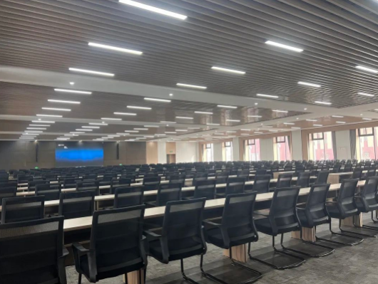 多功能会议室建筑面积850平方米,设有400个座位,厅内装修采用现代化、国际化、商务化风格,场地专业扩声、无线数字化会议及无线传声器等专业多媒体系统、设施完善。