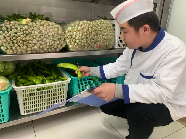 餐饮中心库管员负责按照每周制定的食谱,认真做好各项蔬菜肉品海鲜等食材采购、入库、验货及盘点工作。