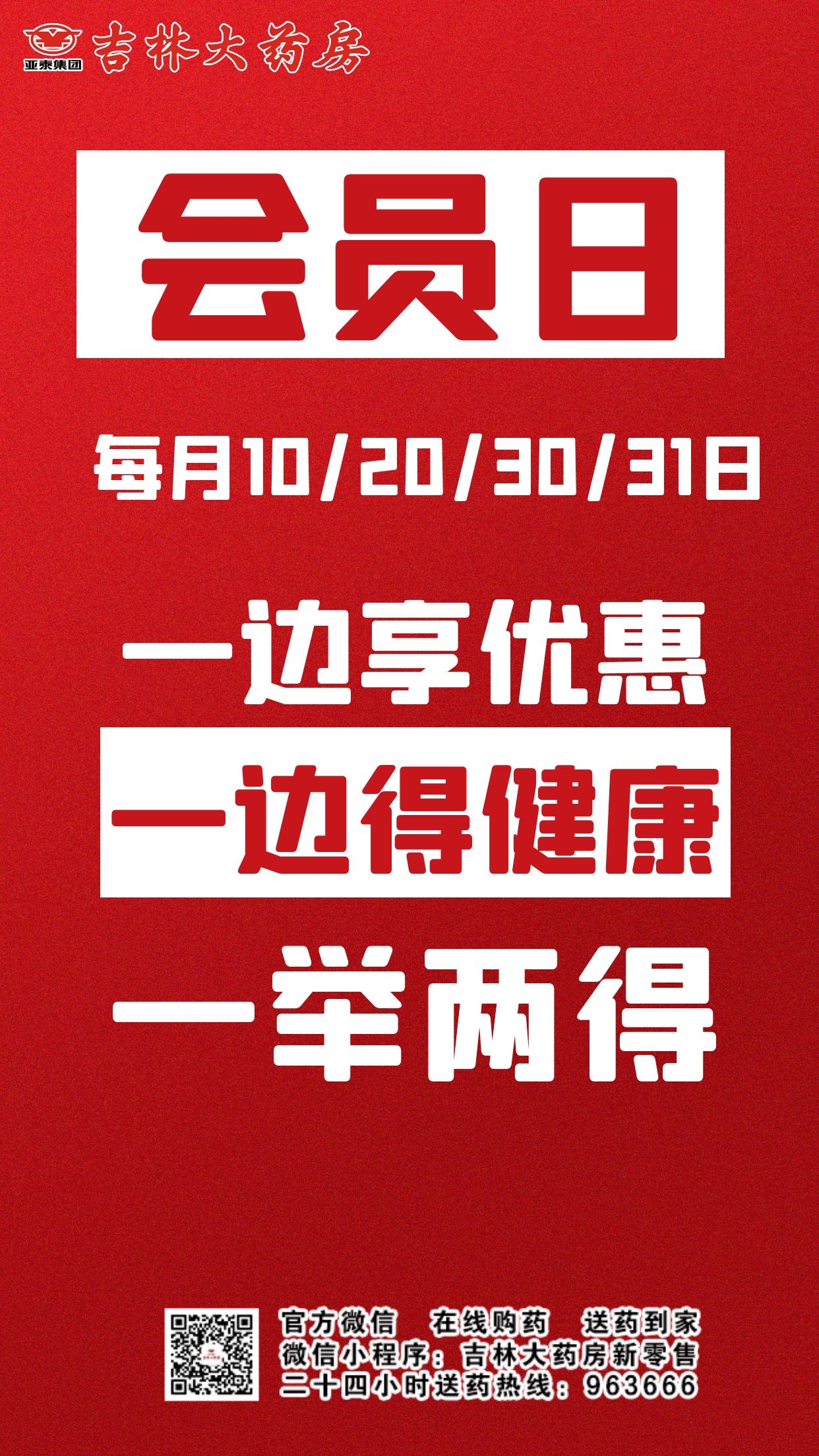 吉林大药房会员日——让您一边享优惠,一边得健康!
