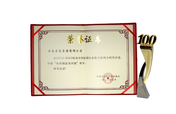 (亚泰医药集团荣获中国医药制造业百强企业)